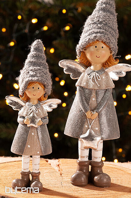 Holčička s pletenou vlněnou čepicí jako pohádkový andílek. Nabízíme ji ve dvou velikostech. V rukou nese stříbrnou hvězdičku a usmívá se na celý svět. Krásná postavička vykouzlí vánoční náladu.