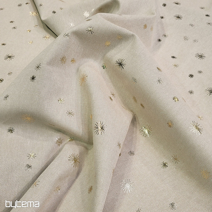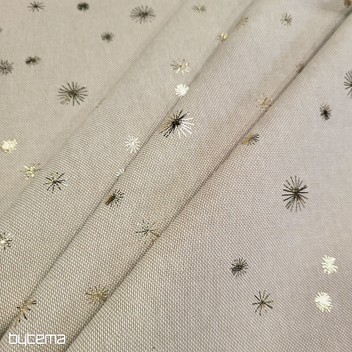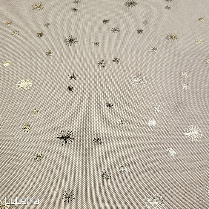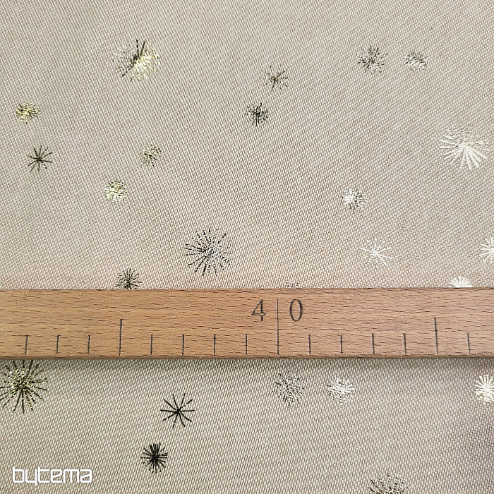 Hrubší bavlna-CANVAS látka s vánočními zlatými hvězdami či vločkami na režném podkladu, se krásně hodí na ubrusy, prostírky a nebo povlaky na polštáře.
