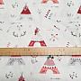 Krásná bavlněná látka s jemným indiánským vzorem, ze které lze ušít ubrusy, povlaky na polštáře, kapsáře nebo hnízdečka pro vaše nejmenší. Látka je vhodná pro letní táboření všech věkových kategorií.