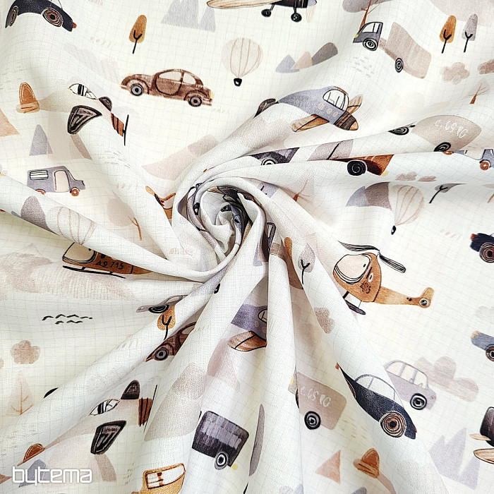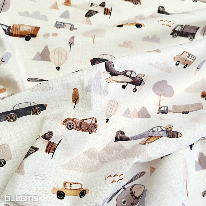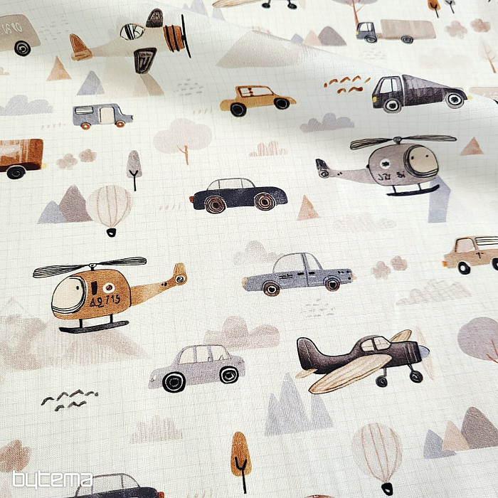 Bavlněná látka pro kluky a milovníky dopravních prostředků. Látka má atest k ušití dětského povlečení.