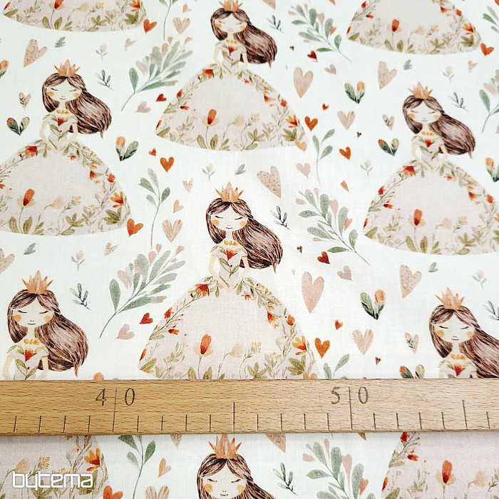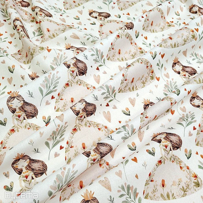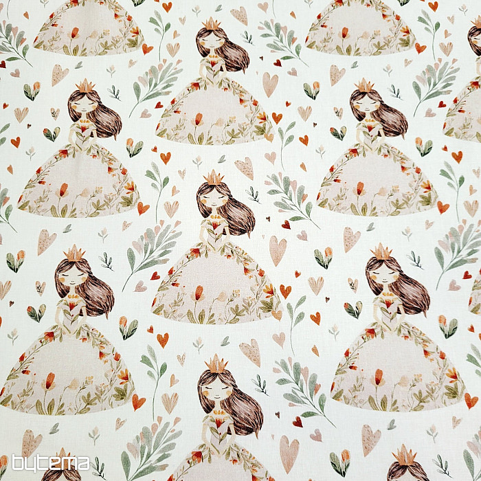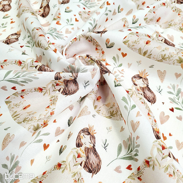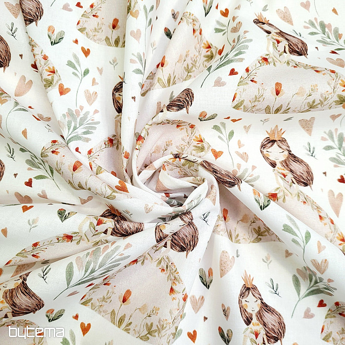 Bavlněná látka pro malé holčičky, které mají rády princezny a srdíčka. Dokonalý potisk zaručeně vykouzlí úsměv na tváři.