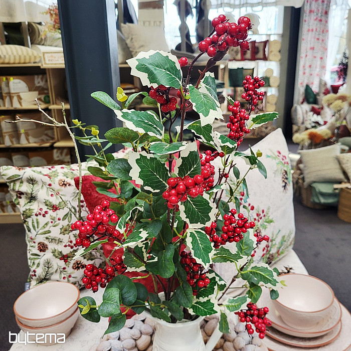 Dekorace pro období zimy. Na větvičce dlouhé 90 cm jsou sytě červené bobulky, které jsou jako stvořené pro vnitřní i venkovní dekoraci.