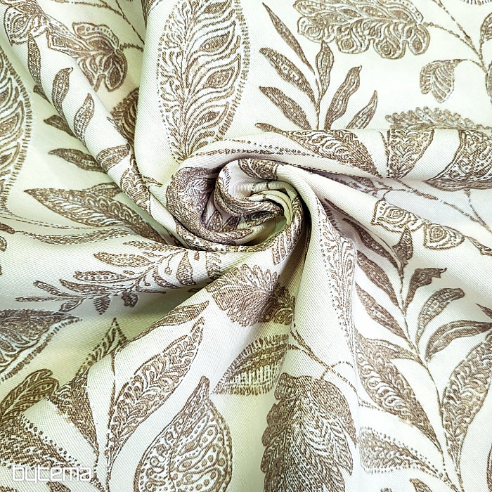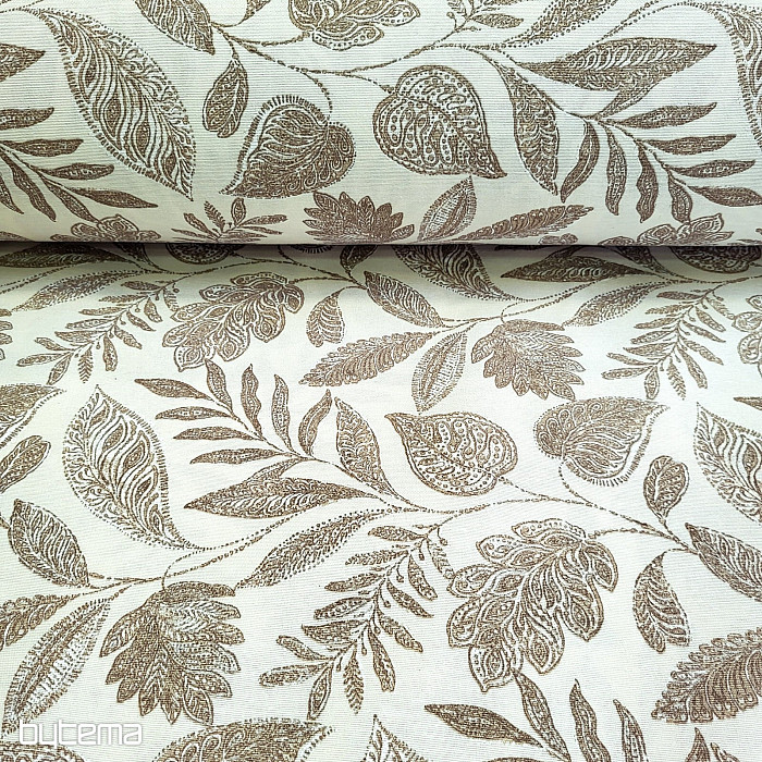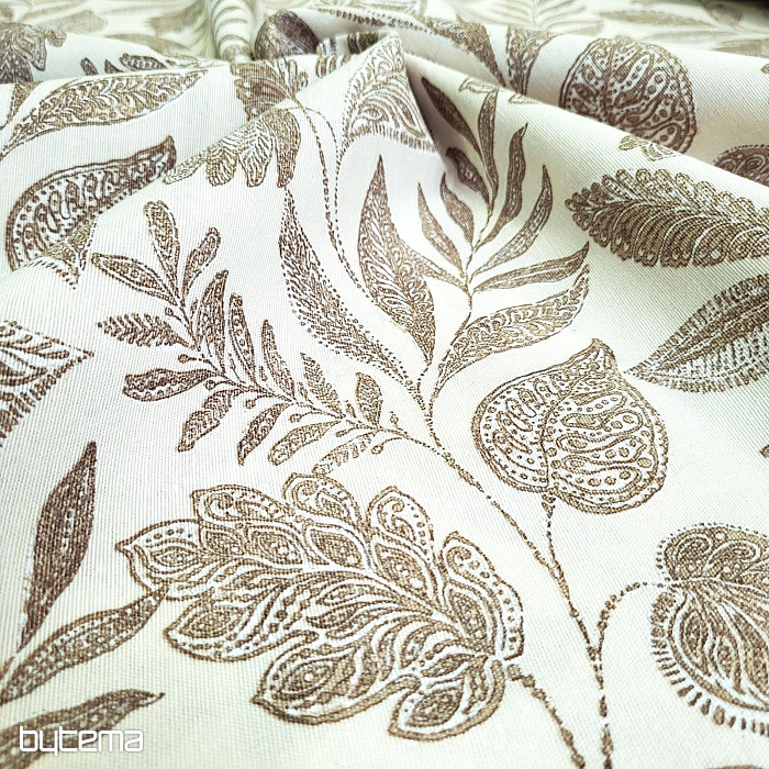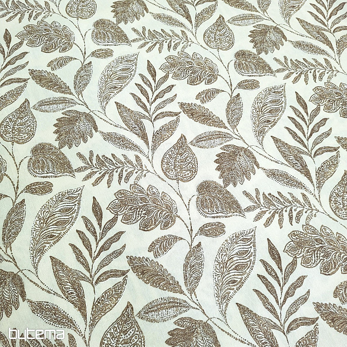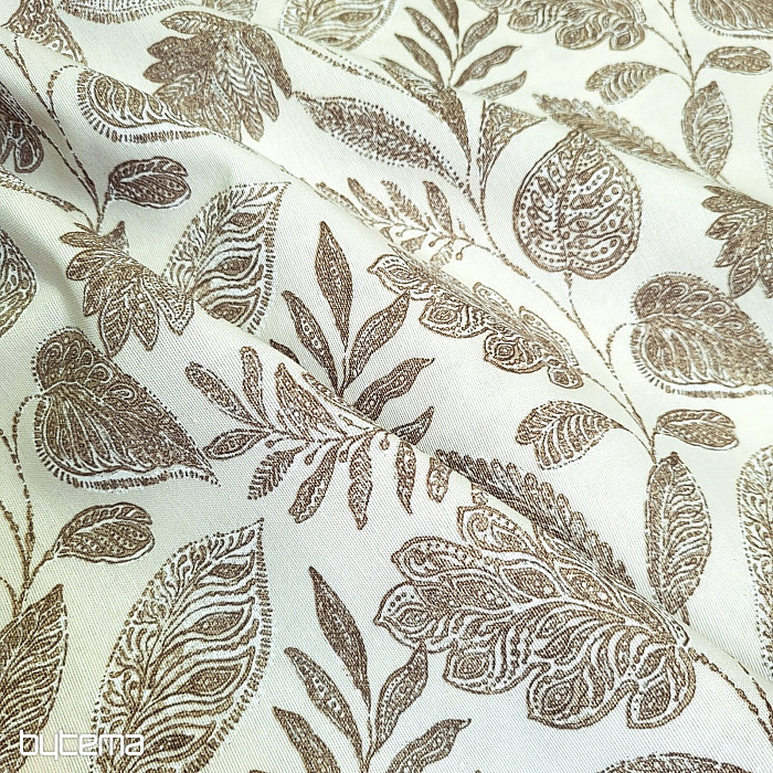 Dekorační látka s velkými listy různého druhu.