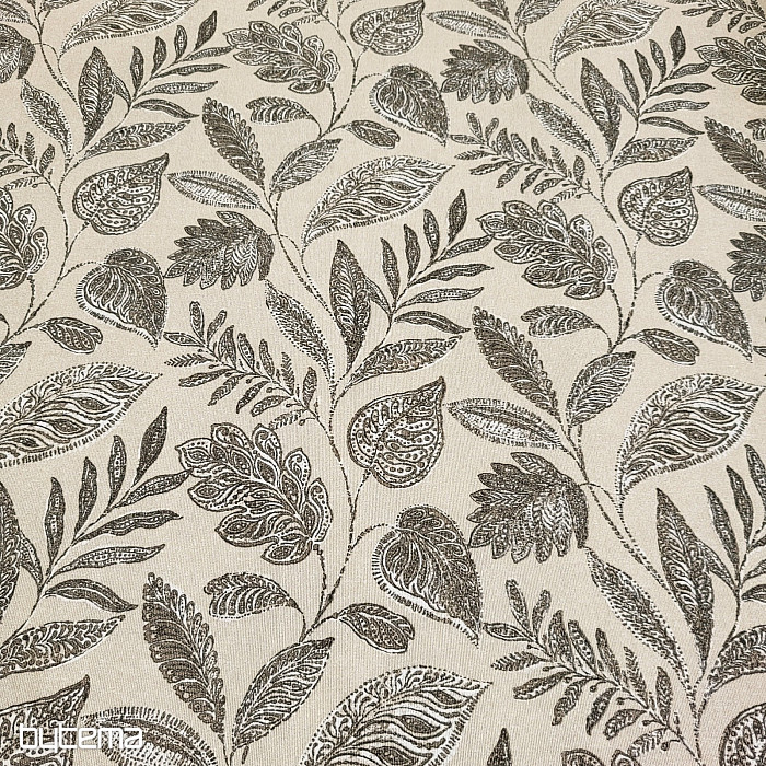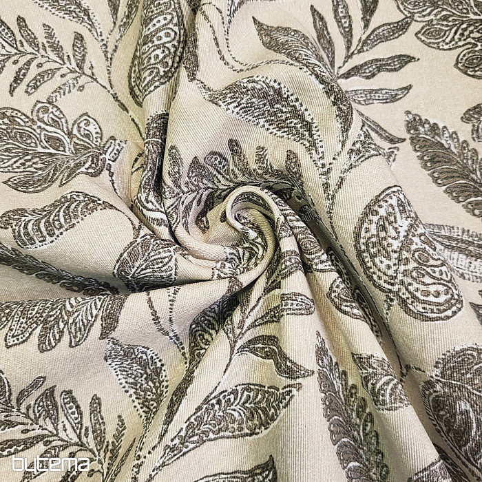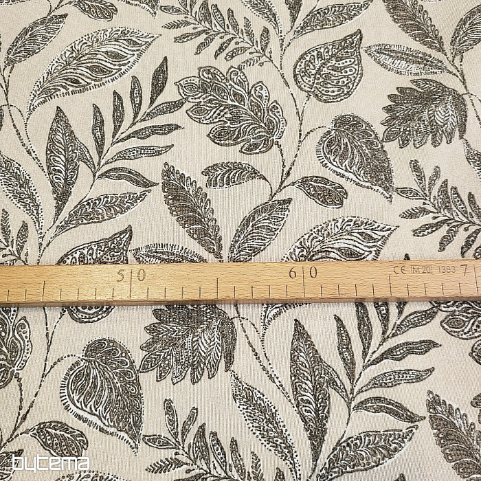 Dekorační látka s velkými listy různého druhu.