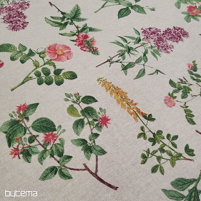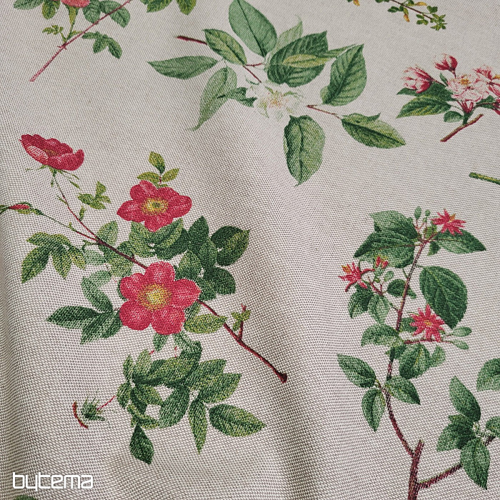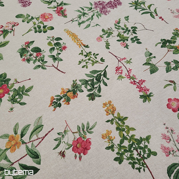 Dekorační látka se záplavou květin na režném podkladu bude designovou kráskou u vás doma.