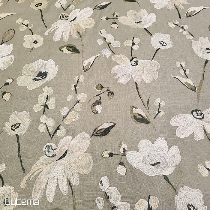 Dekorační látka s jemnou výšivkou v odstínech hnědé. Krásná na pohled i na dotek. Úžasný a dokonalý kousek pro váš pokoj.