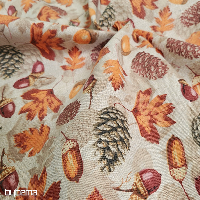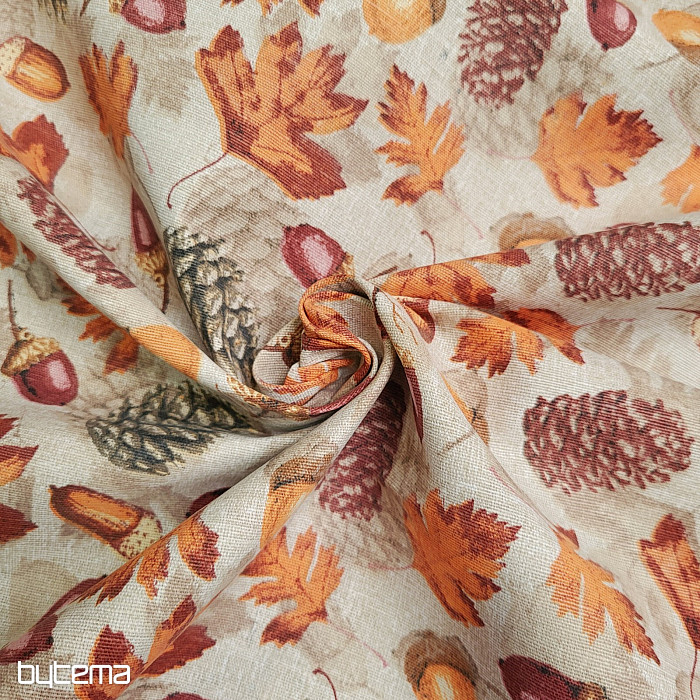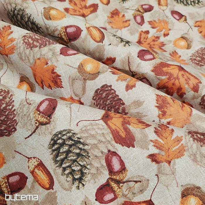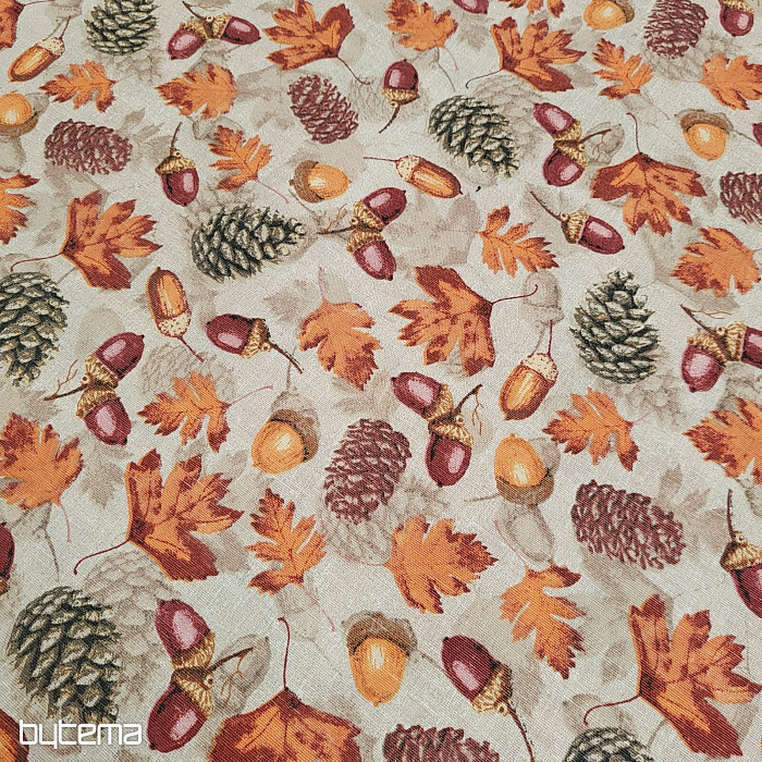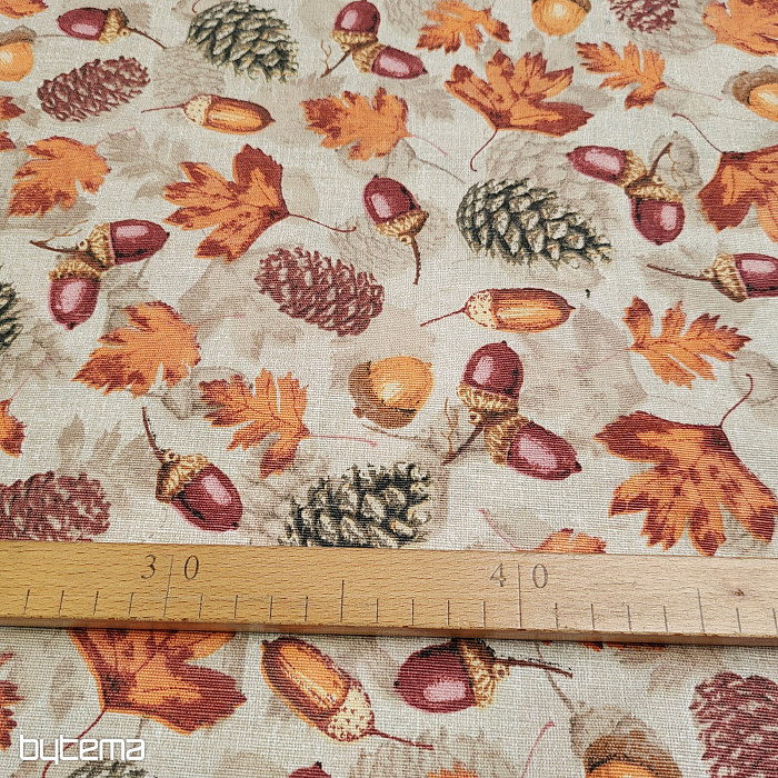 Podzimní dekorační látka plná lesních plodů potěší oko každého chataře i chalupáře.
