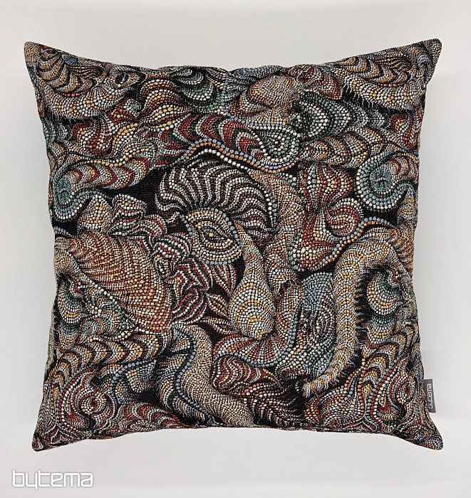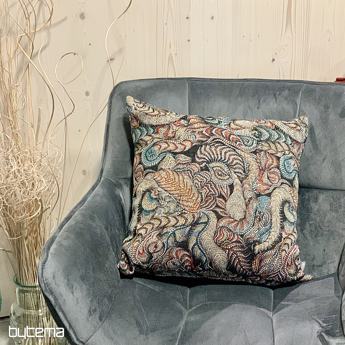 Výrazný gobelínový polštář, který dodá modernímu interiéru hloubku a charakter.