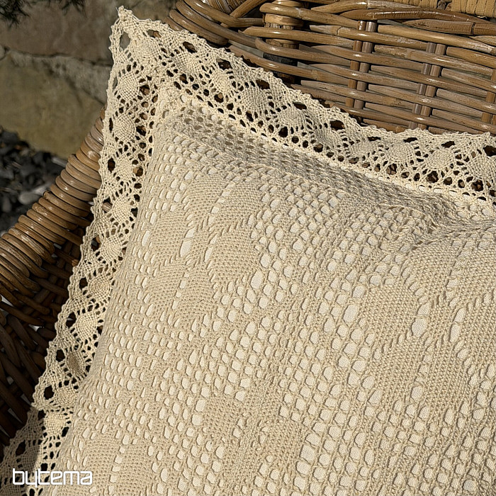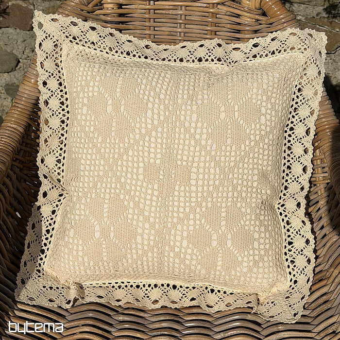 Dokonalé krajkové povlaky na polštáře v béžové barvě a s decentním vzorem. Úžasná dekorace pro všechny chaloupky a venkovské styly.