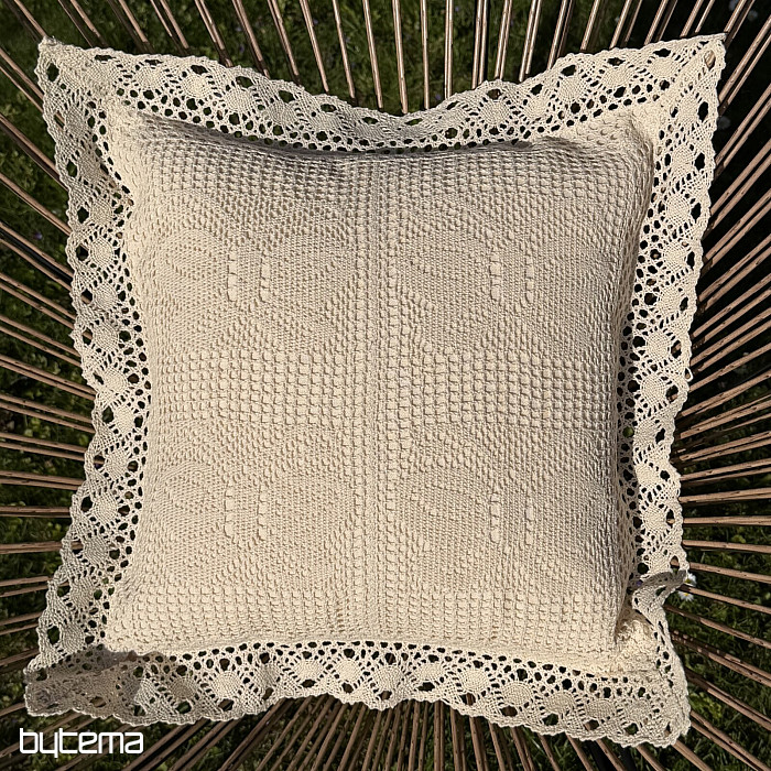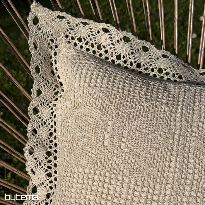 Dokonalé krajkové povlaky na polštáře v béžové barvě a s decentním vzorem. Úžasná dekorace pro všechny chaloupky a venkovské styly.