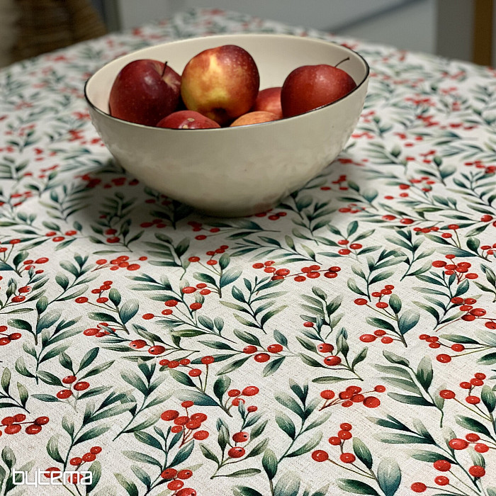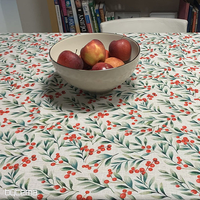 Krásný ubrus v atypickém rozměru s červenými bobulemi se krásně hodí do vánočního období. Ale nejen přes vánoční čas bude ozdobou vašich pokojů.