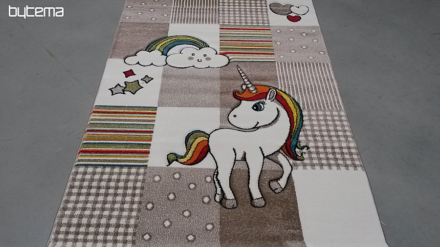 Kvalitní dětský DIAMOND KIDS kusový koberec s motivem jednorožce, 100% heatset, frise, plasticky prostřižený.