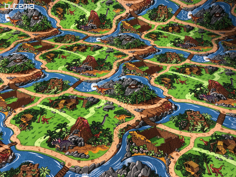 Dětský koberec potisk, populární DINOSAUŘÍ dráha pro děti, šíře 400cm, podklad filc.