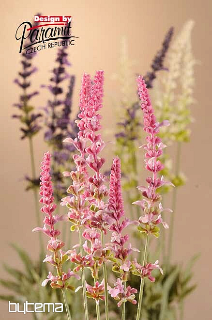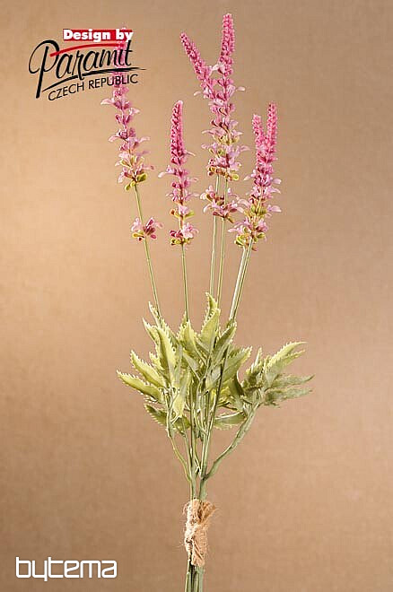 Svazek levandulových větviček. Kytička je svázána přírodním provázkem, obsahuje šest do růžova odstínovaných květů levandule a devět listů v matné šedozelené barvě. No, nevoní, ale zato udělá parády po dlouhou dobu. Svěží barvy zútulní každý pokoj.