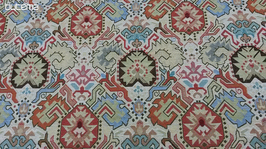 Vysoce kvalitní, těžká gobelínová látka se skvostným vzorem do kombinace. Vhodná nejen na dekoraci, polštáře, závěsy ale i také na lehké čalounické práce.