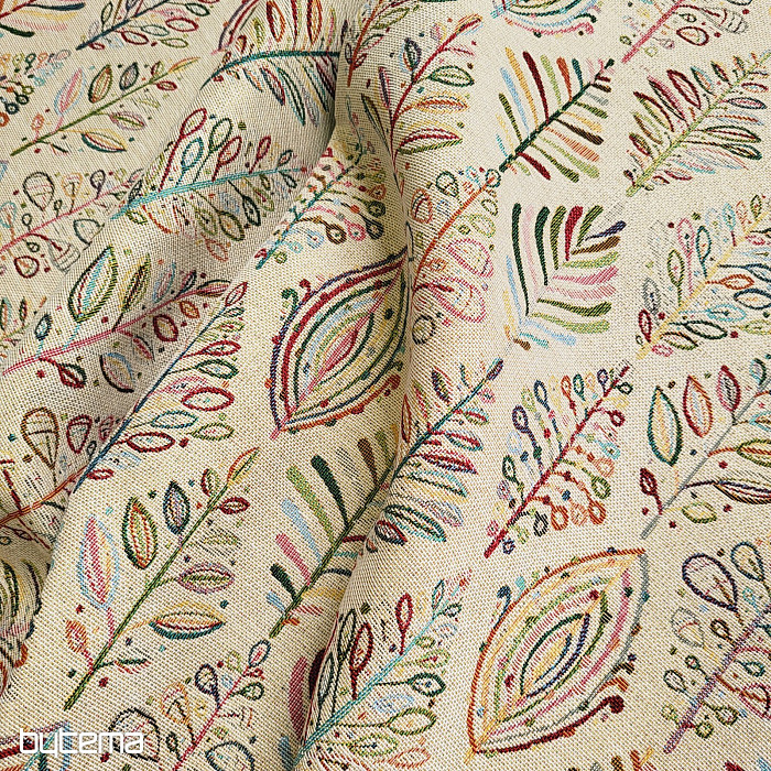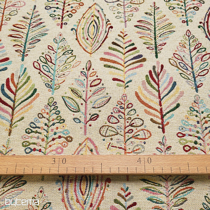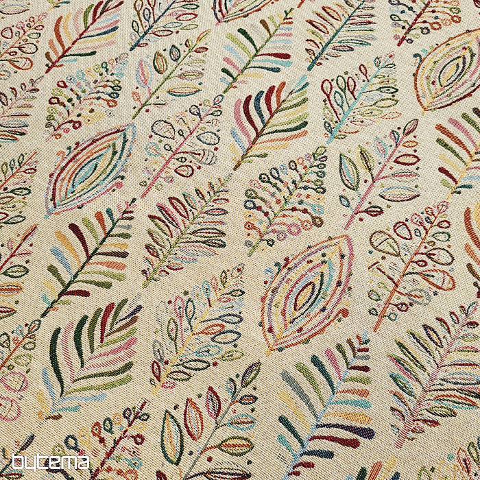 Gobelínová látka je naší novinkou na prodejně. Jemné, ale zářivé barvy látce dodají na eleganci.