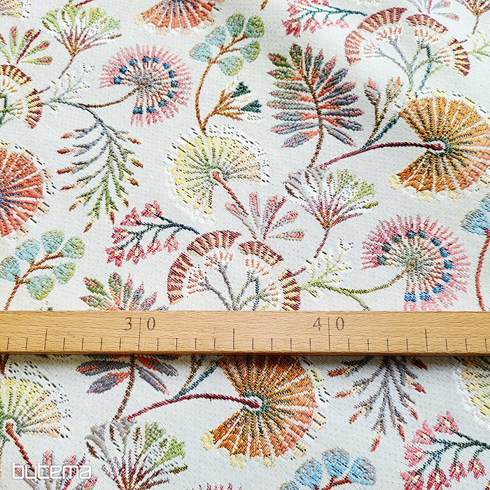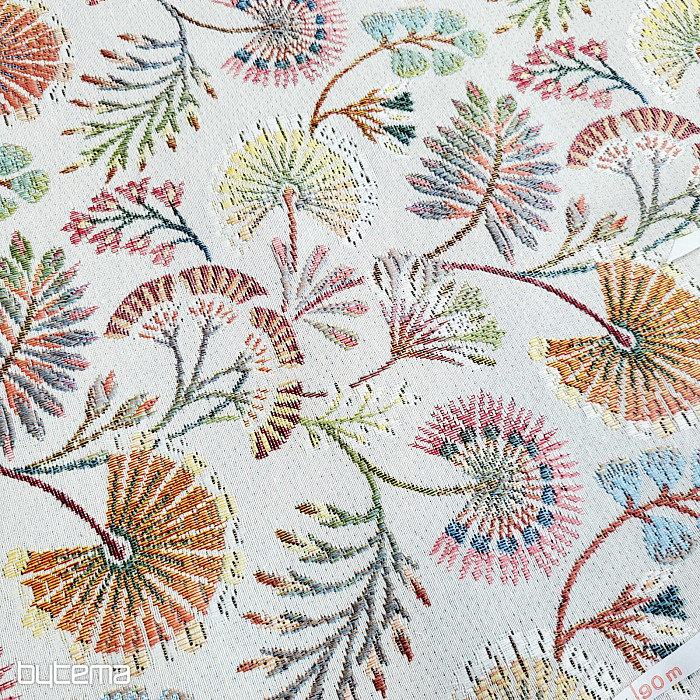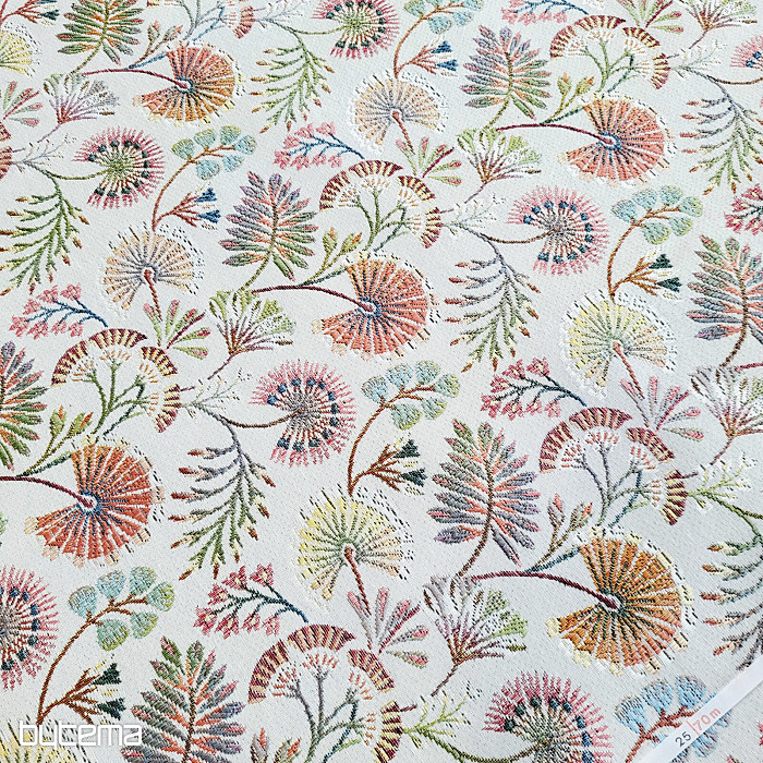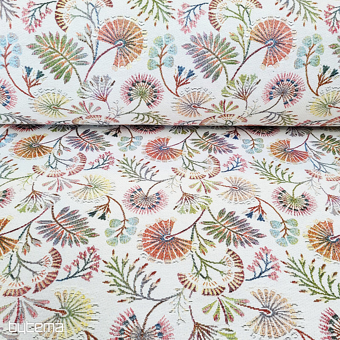 Gobelínová látka s barevnými květy je naší novinkou na prodejně. Jemné, ale zářivé barvy látce dodají na eleganci.