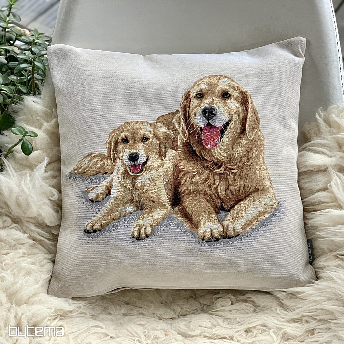 Gobelínový povlak na polštář s labradorem a roztomilým štěňátkem. Krásný dárek pro všechny milovníky psů.