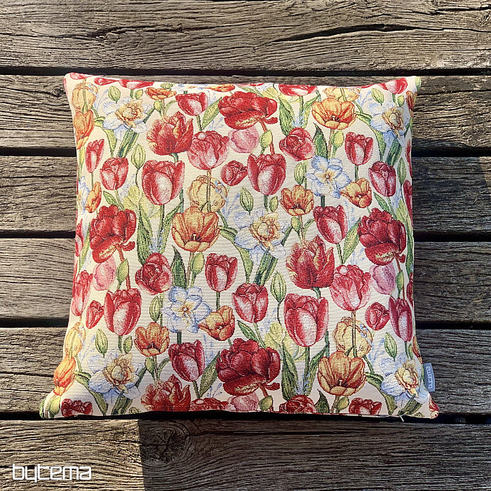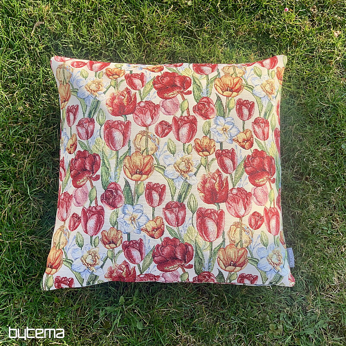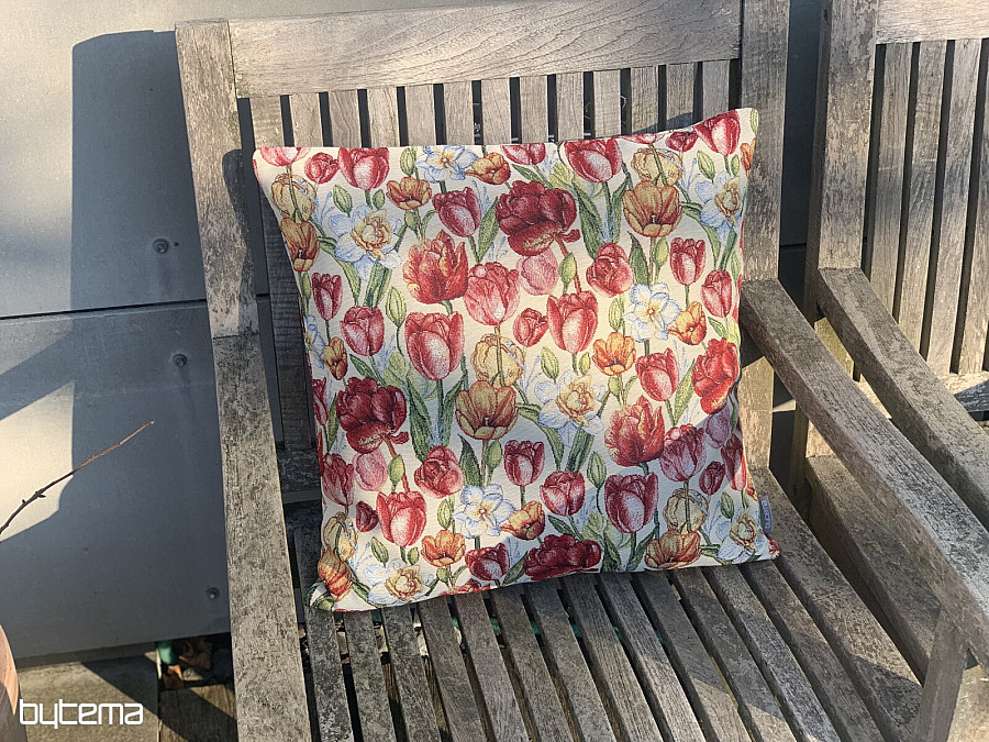 Nádherný gobelínový povlak s jarními květy tulipánů a narcisů. Úžasná barevná záplava květů a jara u vás doma.