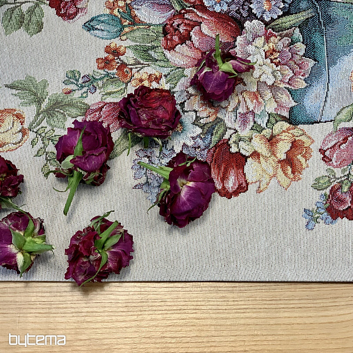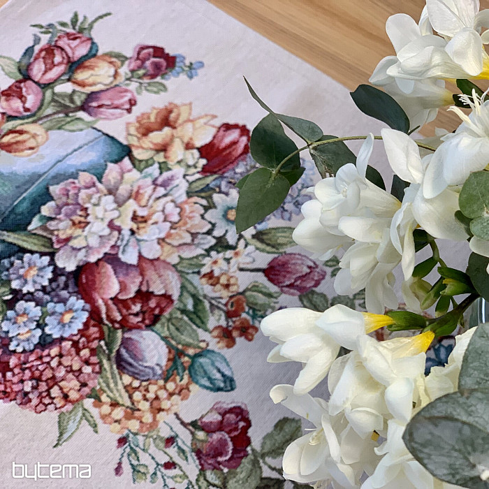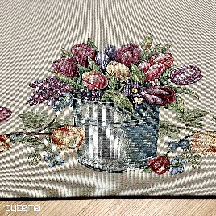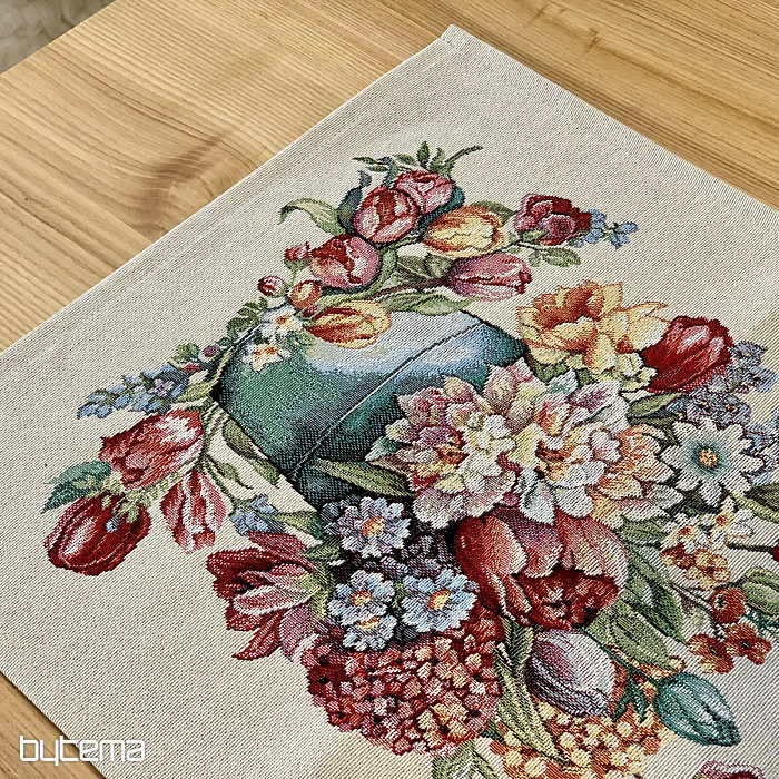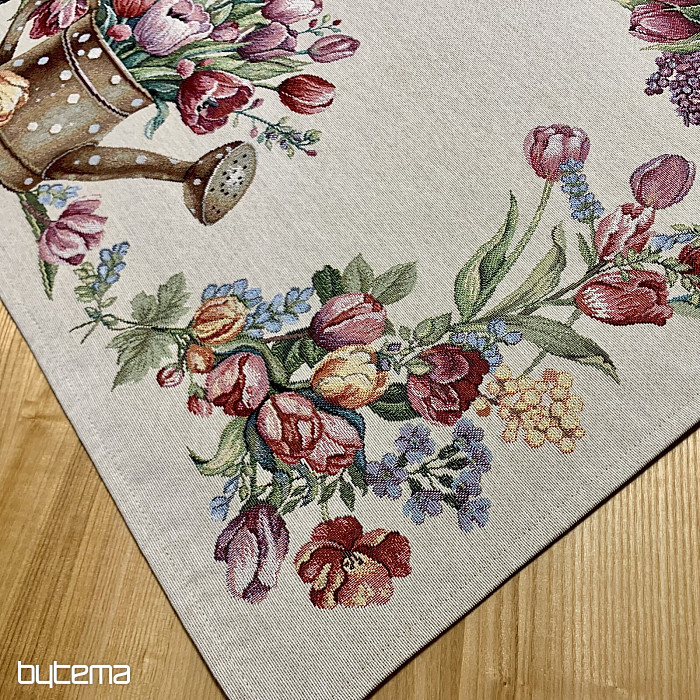 Gobelínový ubrus a šál plný jarních barev a květin bude ozdobou každého stolu u vás doma. Můžete krásně skombinovat s povlakem na polštář ve stejném designu. Váš dům bude plný jarních květin.