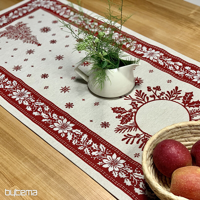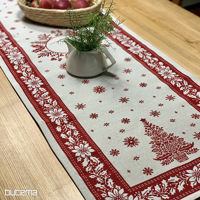 Vánoční gobelínový ubrus a šál s jemným designem na váš vánoční slavnostní stůl.