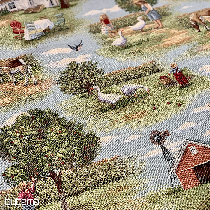 Velmi kvalitní gobelínová látka s nádherným motivem venkovského žití bude dělat radost v každém domě.