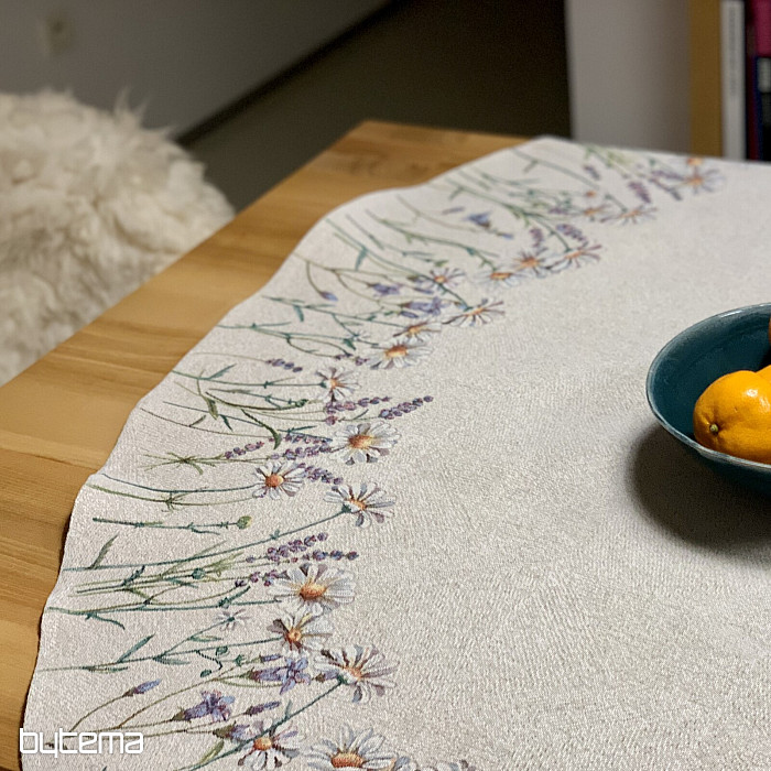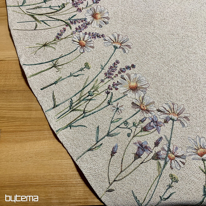 Gobelínový kulatý ubrus je jako stvořený pro jarní chvíle ve vaší kuchyni či pergole.