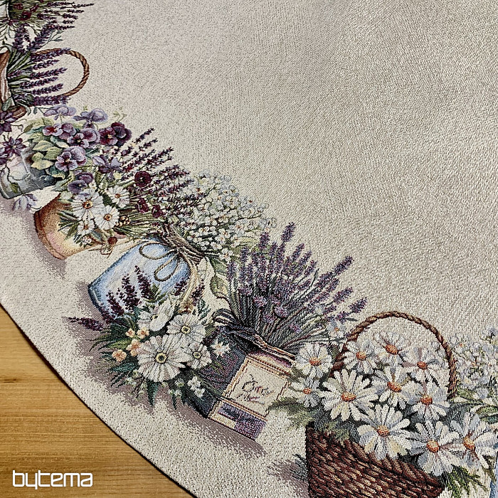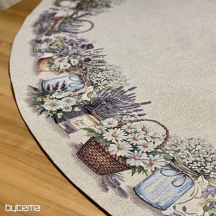 Nádherný kulatý ubrus z pevného gobelínu plná květů, která vnese do vašeho domova krásu.