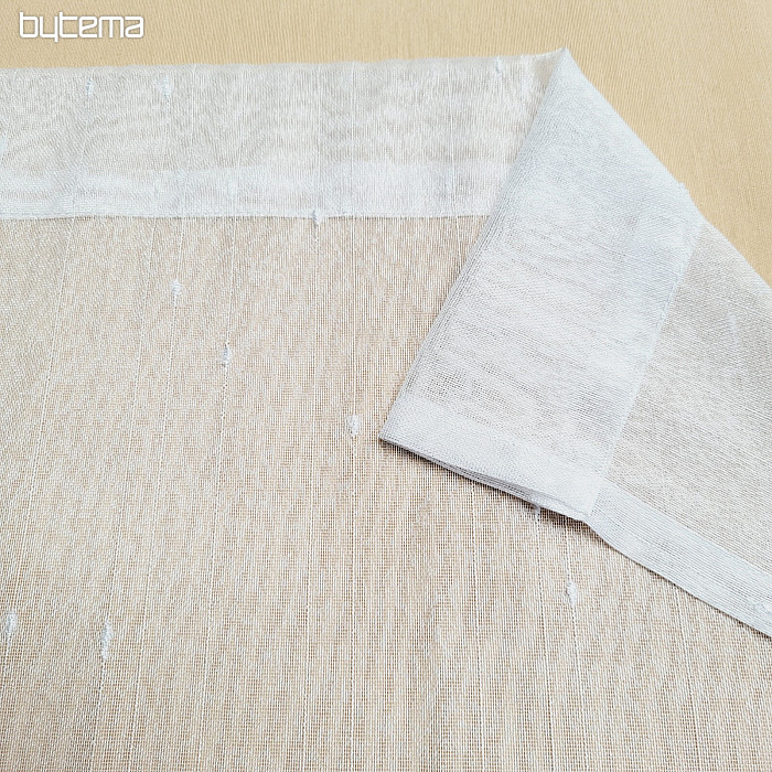 Krásná, čistě bílá záclona s tkanými nitkami, které občas vytvoří "žmolek". Velice moderní kousek, který má již olemované strany a horní okraj je zakončený 5 cm tunýlkem. Záclona je tak již připravena k pověšení.