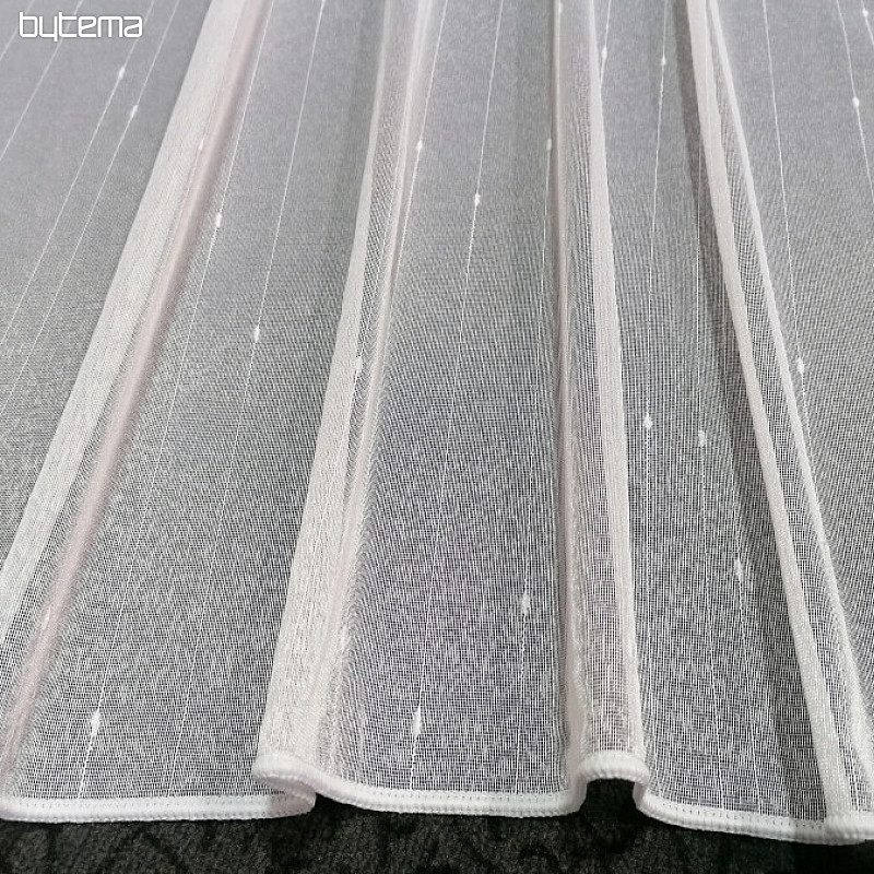 Záclona má našitý tunel (6cm), na gárniž o průměru do 16 mm, boční olůvka