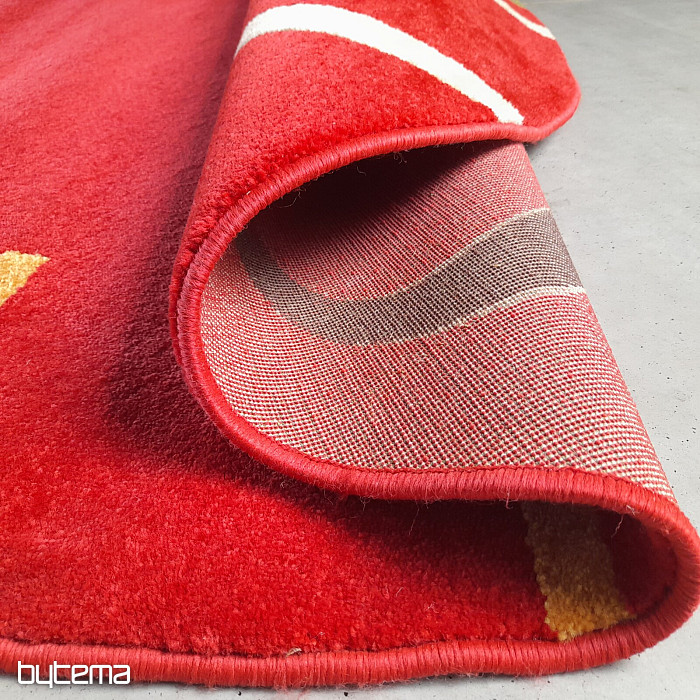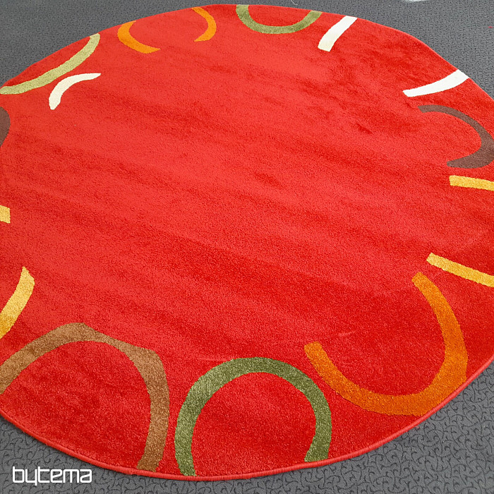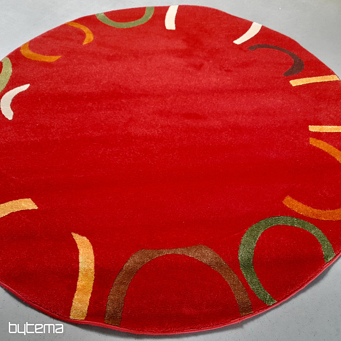 Raritní kus kruhového koberce sytých barev, kde převládá jasně červená.