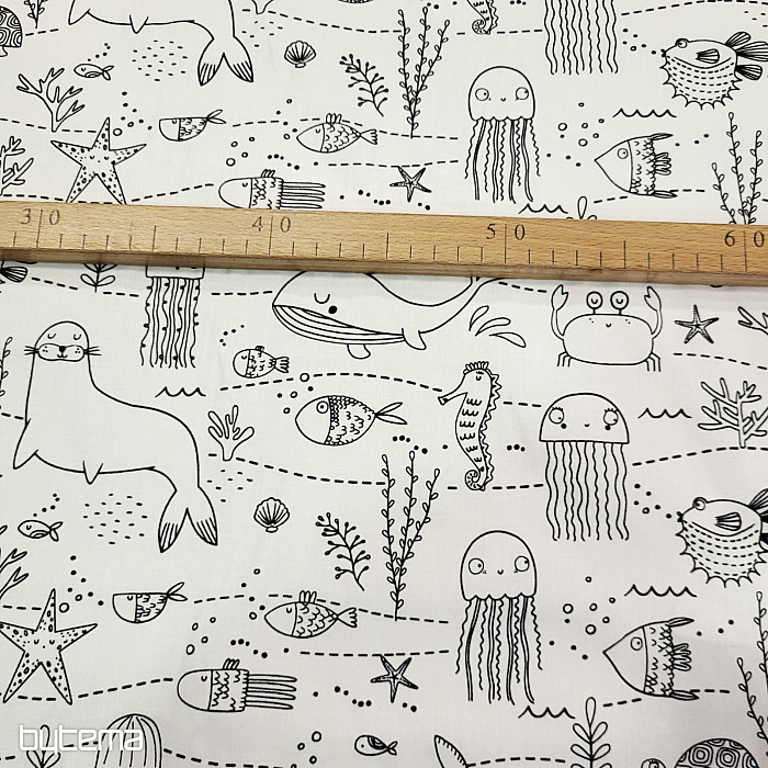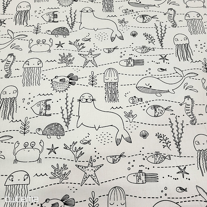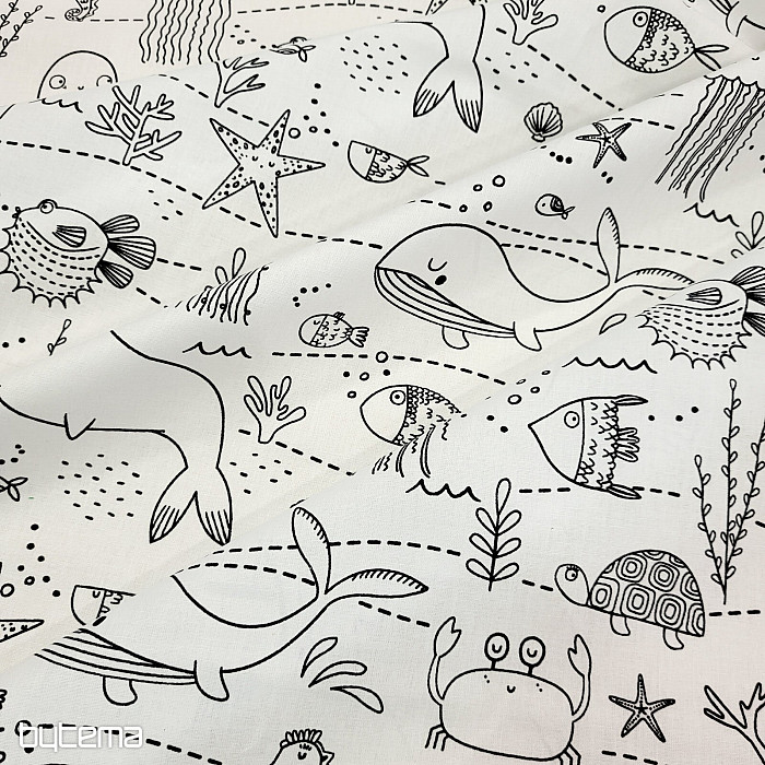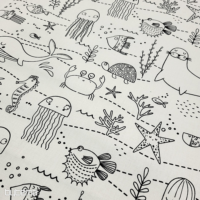 Látka s podmořskými živočichy, které si můžou děti samy vybarvit dle své fantazie.