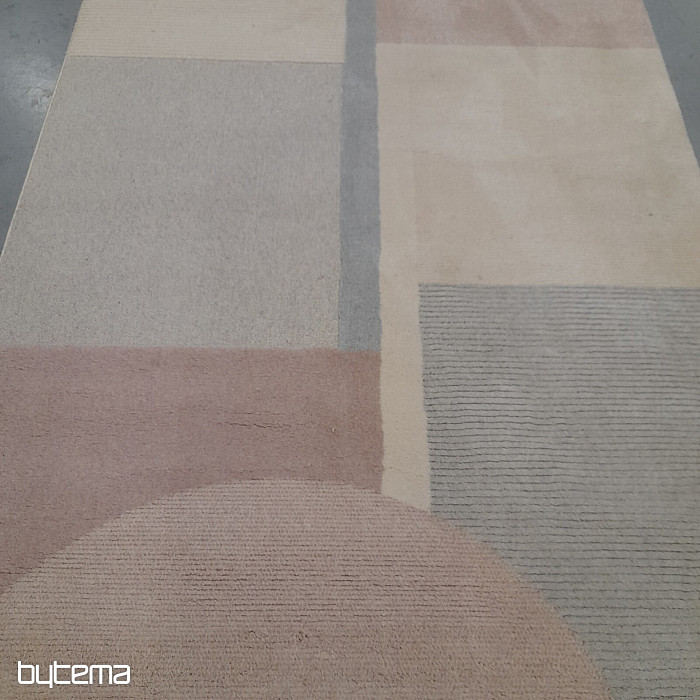 Luxusní belgický koberec v pastelových barvách s 3D geometrickými vzory. Plastický efekt vytváří různě upravený vlas, který je vyroben z ovčí vlny. Ta zaručuje koberci vysokou odolnost a životnost.