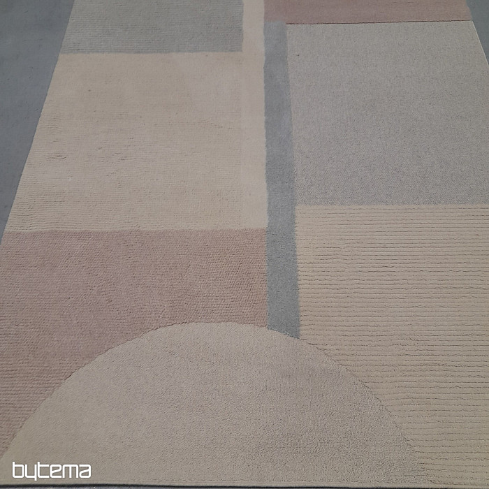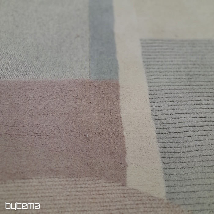 Luxusní belgický koberec v pastelových barvách s 3D geometrickými vzory. Plastický efekt vytváří různě upravený vlas, který je vyroben z ovčí vlny. Ta zaručuje koberci vysokou odolnost a životnost.