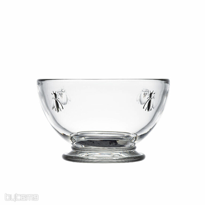 Krásná skleněná miska s dekorem včel.