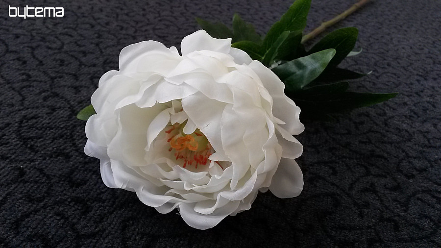 Pivoňka na dlouhém stonku 67 cm. Květina působí krásným dojmem díky věrnému zpracování, a to od květu po stonek a listy. Pivoňka má jeden květ o průměru 11 cm. Ve váze vám vytvoří kouzelnou dekoraci.