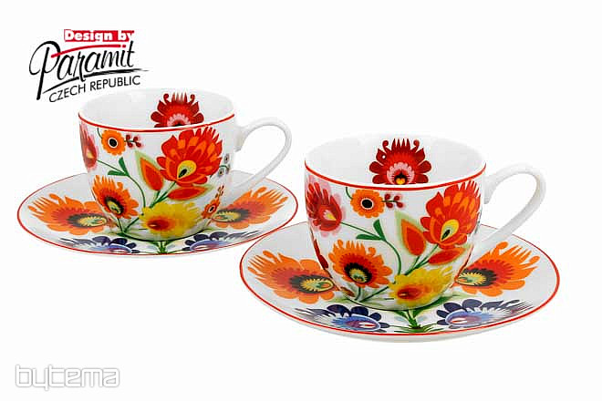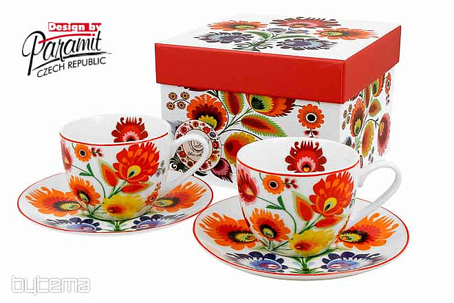 Dva šálky s podšálkem jsou zabaleny do pěkné dárkové krabičky.