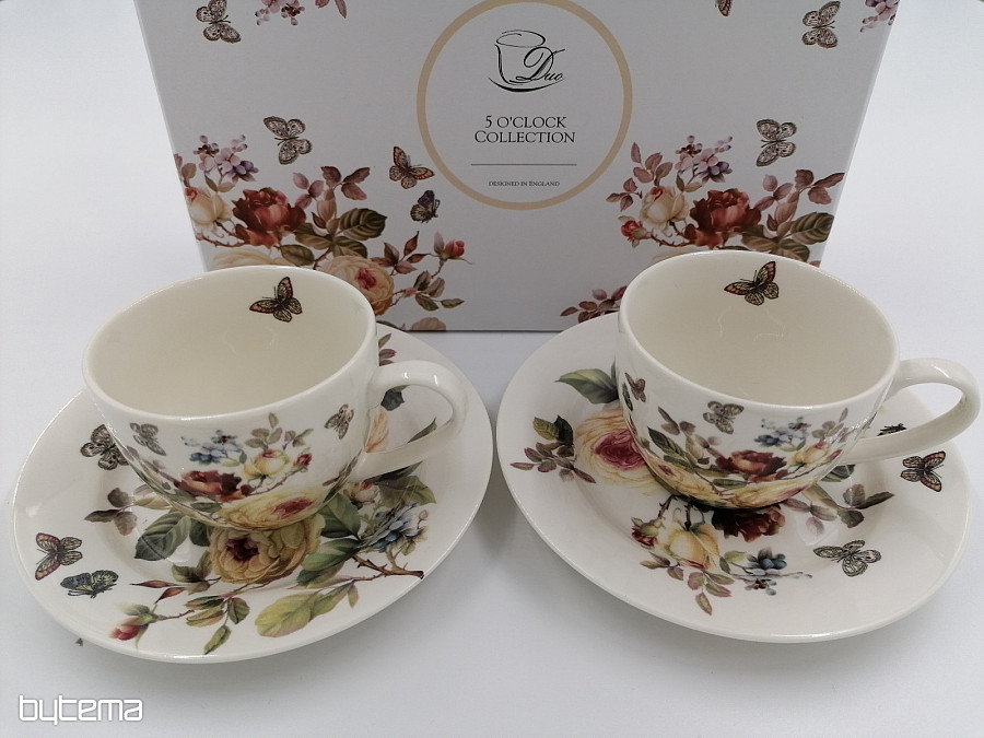 Dva šálky na espresso o objemu 95 ml spolu s podšálky tvoří krásnou dvojičku, která je zabalena do potištěné krabičky, která je polstrovaná a potažena bílým saténem.