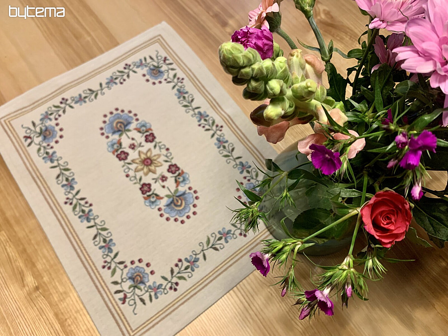 Gobelínové prostírání s kouzelným folklórním motivem květin, vykouzlí romantickou atmosféru.