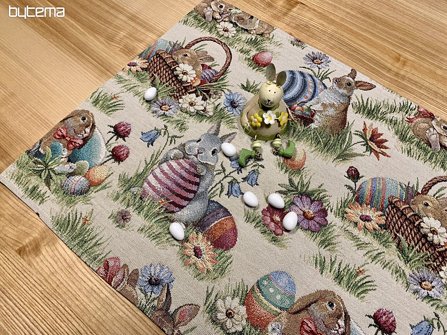 Gobelínov prostírání s motivem VELIKONOČNÍCH králíčků ozdobí každou kuchyni, chatu či chalupu.