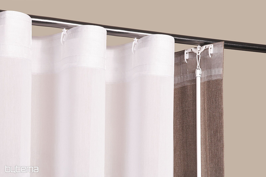 - řasení 1:2 / 3 bm záclony , při stažení budou mít 1,5 bm/ - doporučujeme si vzít o 20cm více záclony nebo dekorační látky, aby hezky vyšla páska a jezdci - od kraje, ke kraji.