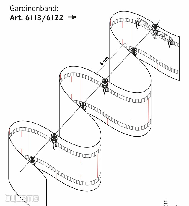 K této pásce je nutné použít artikl EAN 3081 - šňůru s otočnými jezdci, která se navleče do kolejnice a bude držet hezky tvar - viz obrázek
