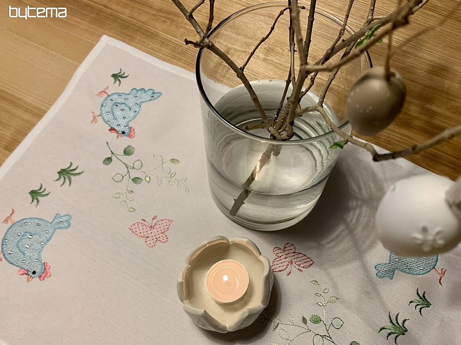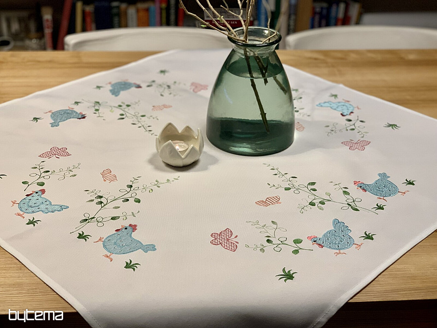 Převléct interiér do svěžího outfitu je snadné. Úžasné možnosti nabízí tyto krásné vyšívané ubrusys barevnými slepičkami.