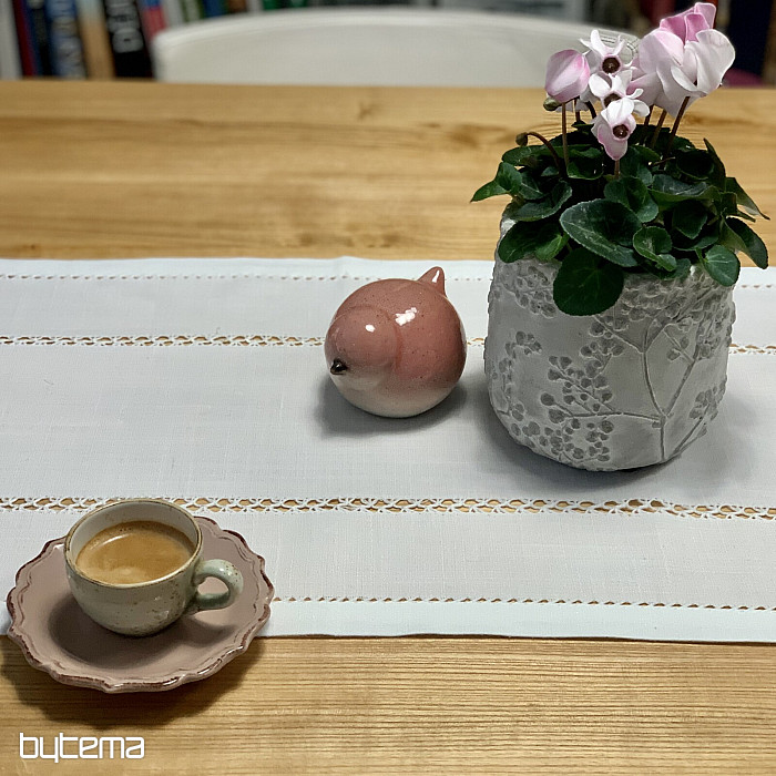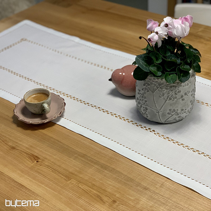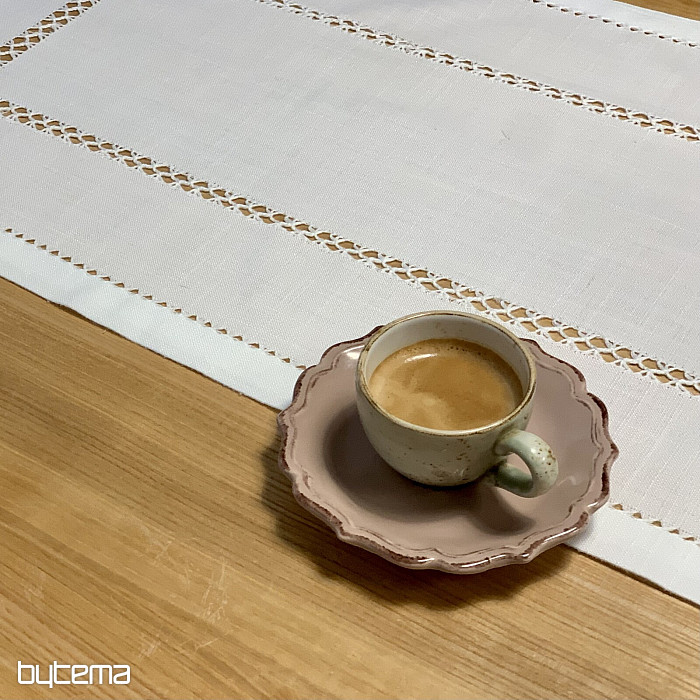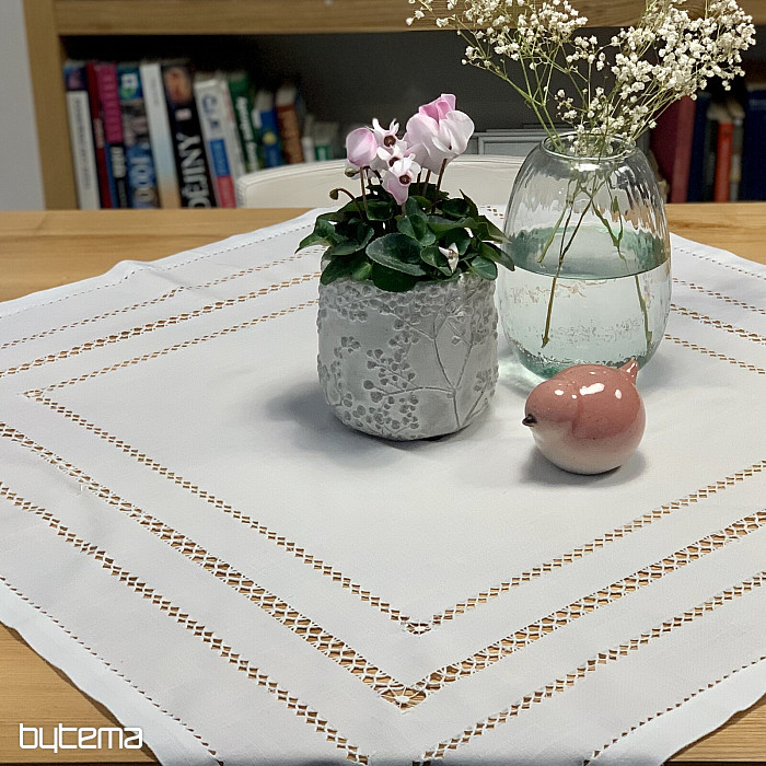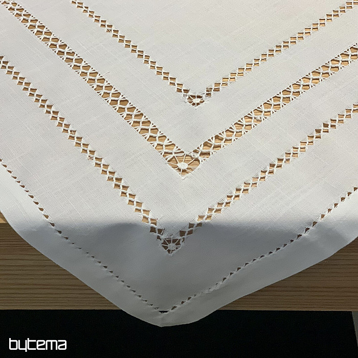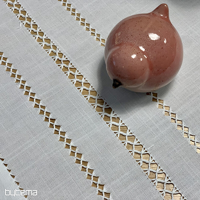 Úchvatný ubrus vyšívaný ažurou se krásně hodí do všech roubenek, chat i chalup, ale ne jen tam.