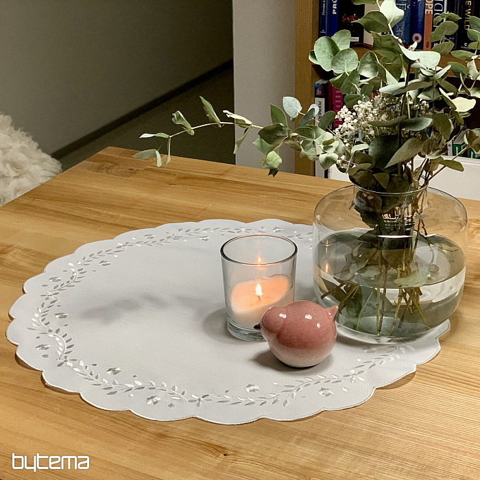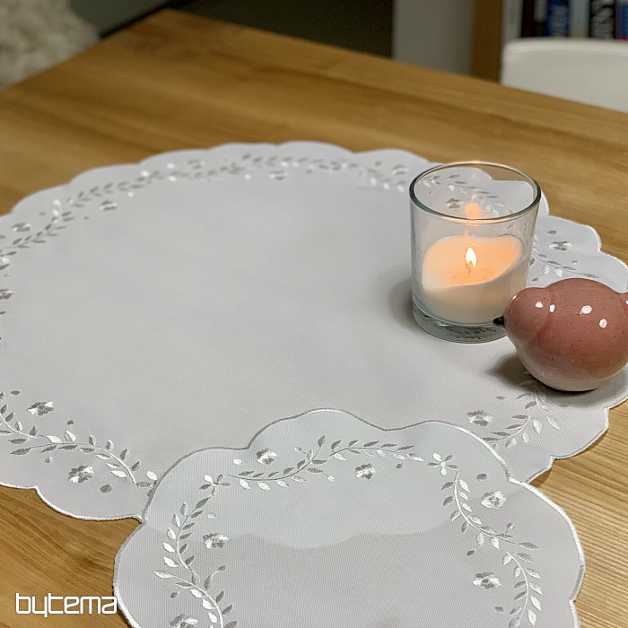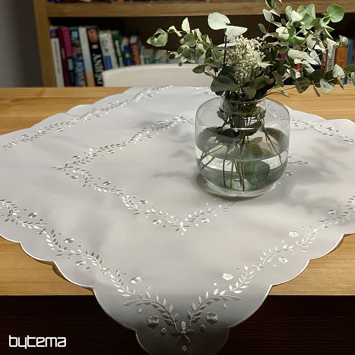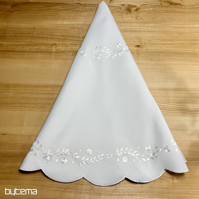 Delikátní ubrus vyšívaný s ažurou, vhodný pro slavnostní příležitosti.