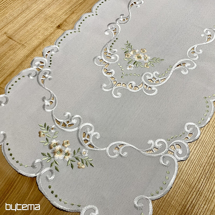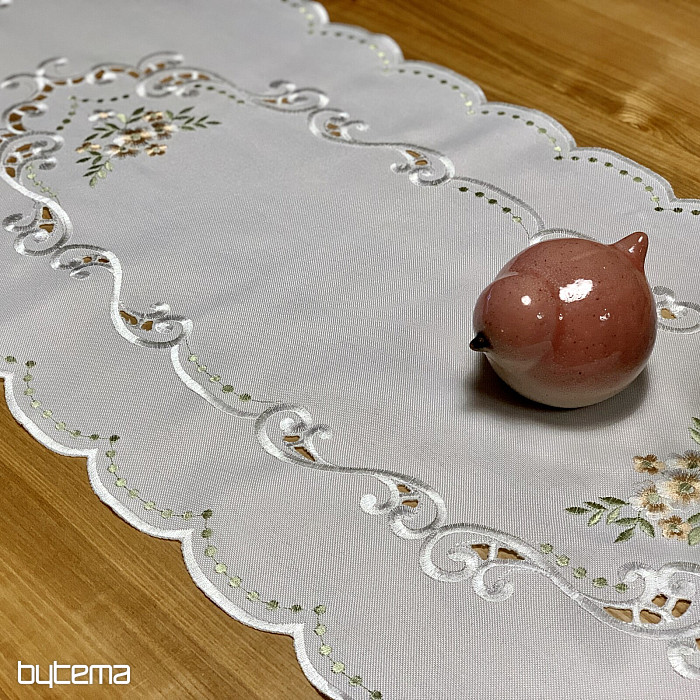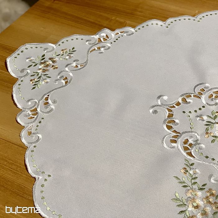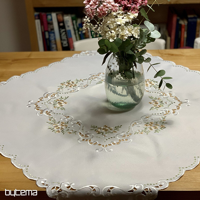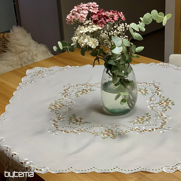 Delikátní ubrus vyšívaný s ažurou, vhodný pro slavnostní příležitosti.