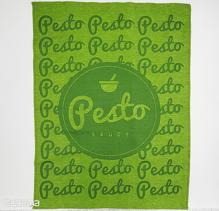 Krásná zelená utěrka s nápisem PESTO. Krásný dárek pro všechny kuchaře.