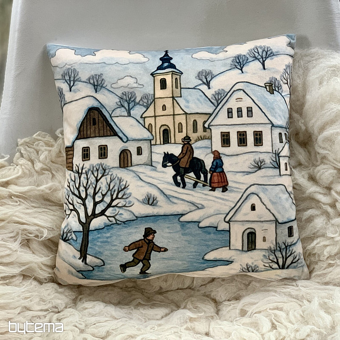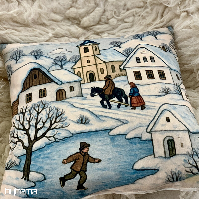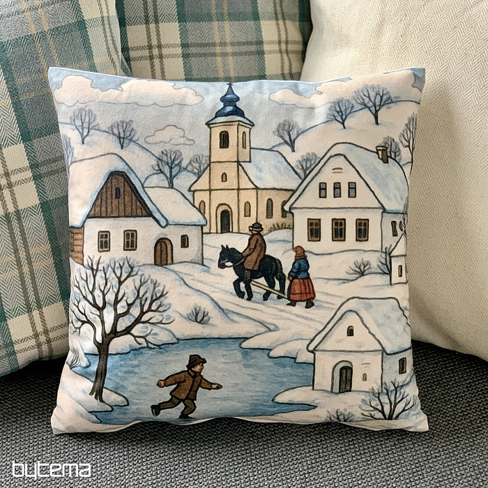 Vánoční povlak na polštář s nádechem Ladovského motivu vám bude dělat radost po celý zimní čas.