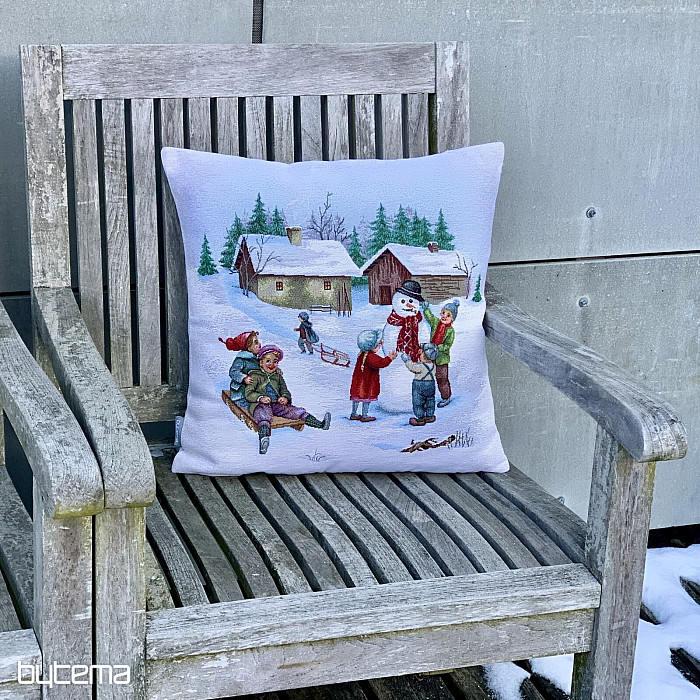 Zimní odpoledne je pevný gobelínový povlak znázorňující dětskou zimní zábavu. Jedičná nostalgie.