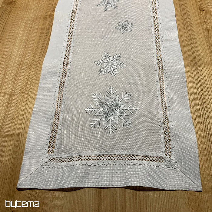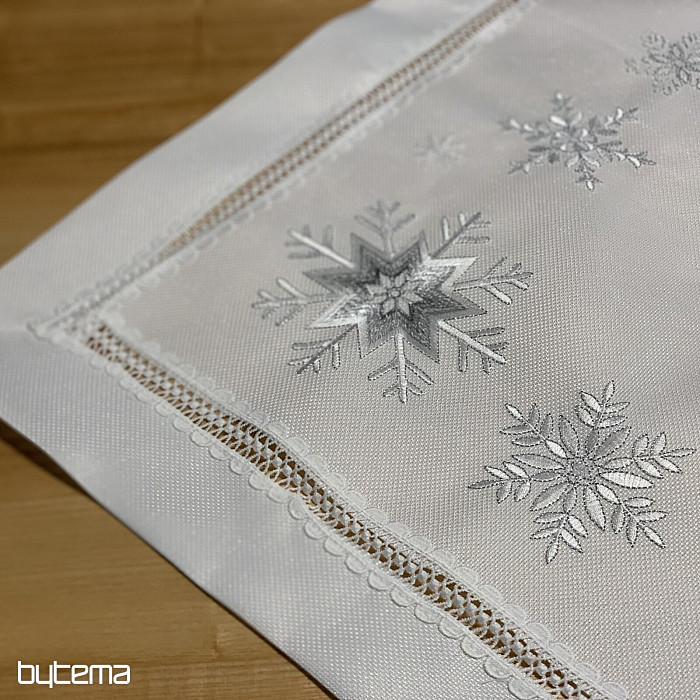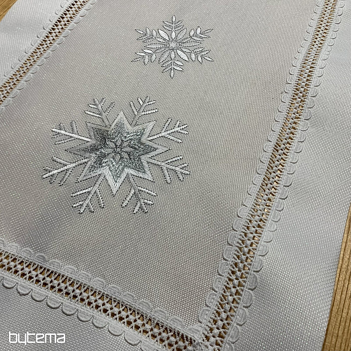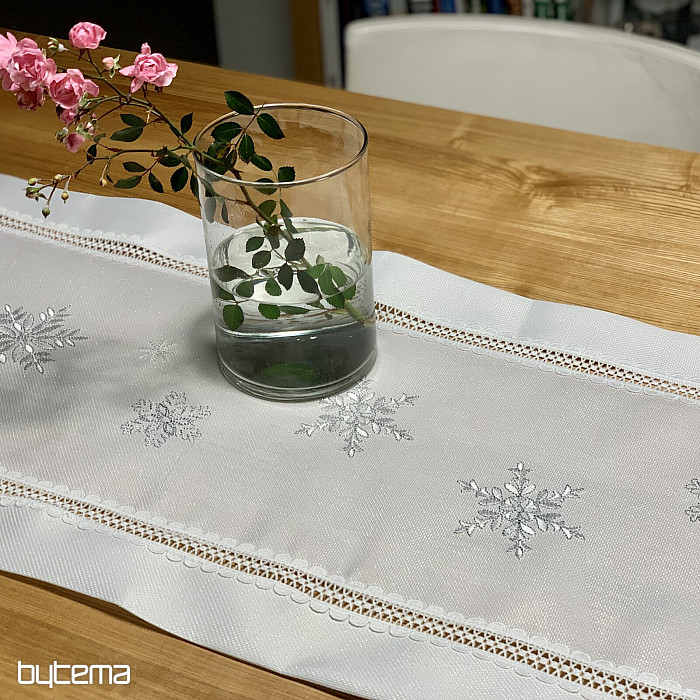 Vánoční dokonalost v podobě bílého ubrusu s vyšívanými stříbrnými vločkami bude zdobit Váš jídelní stůl po celé sváteční dny.